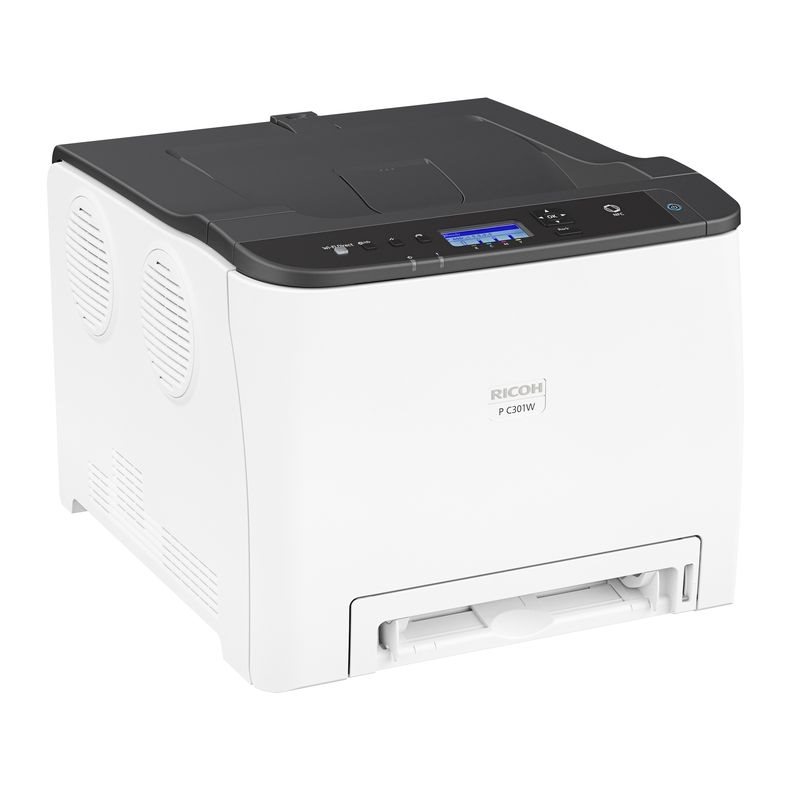 • Anspruchsvollen Druckanforderungen wird die brilliante Schwarzweiß- und Farbausgabe des Ricoh P C301W bei produktiven 25 Seiten pro Minute gerecht