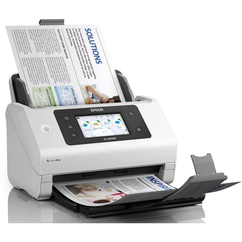 Der Epson WorkForce DS-800WN ist ein netzwerkintegrierter Hochgeschwindigkeitsscanner mit Wi-Fi-Technologie und Kompatibilität mit Open Plattforms.